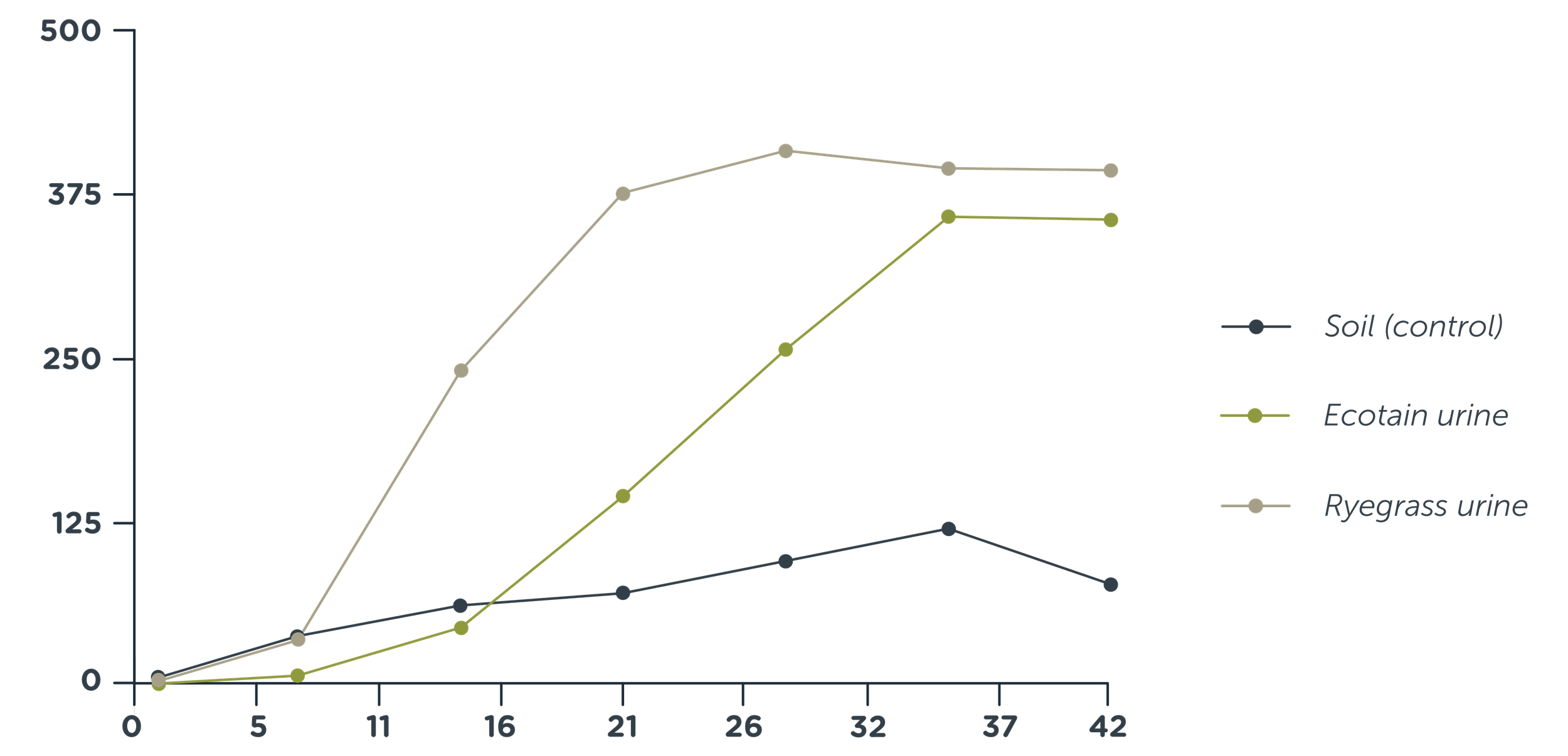 Ecotain can slow the nitrification process, giving plants more opportunity to take up N, which reduces the possibility of leaching.