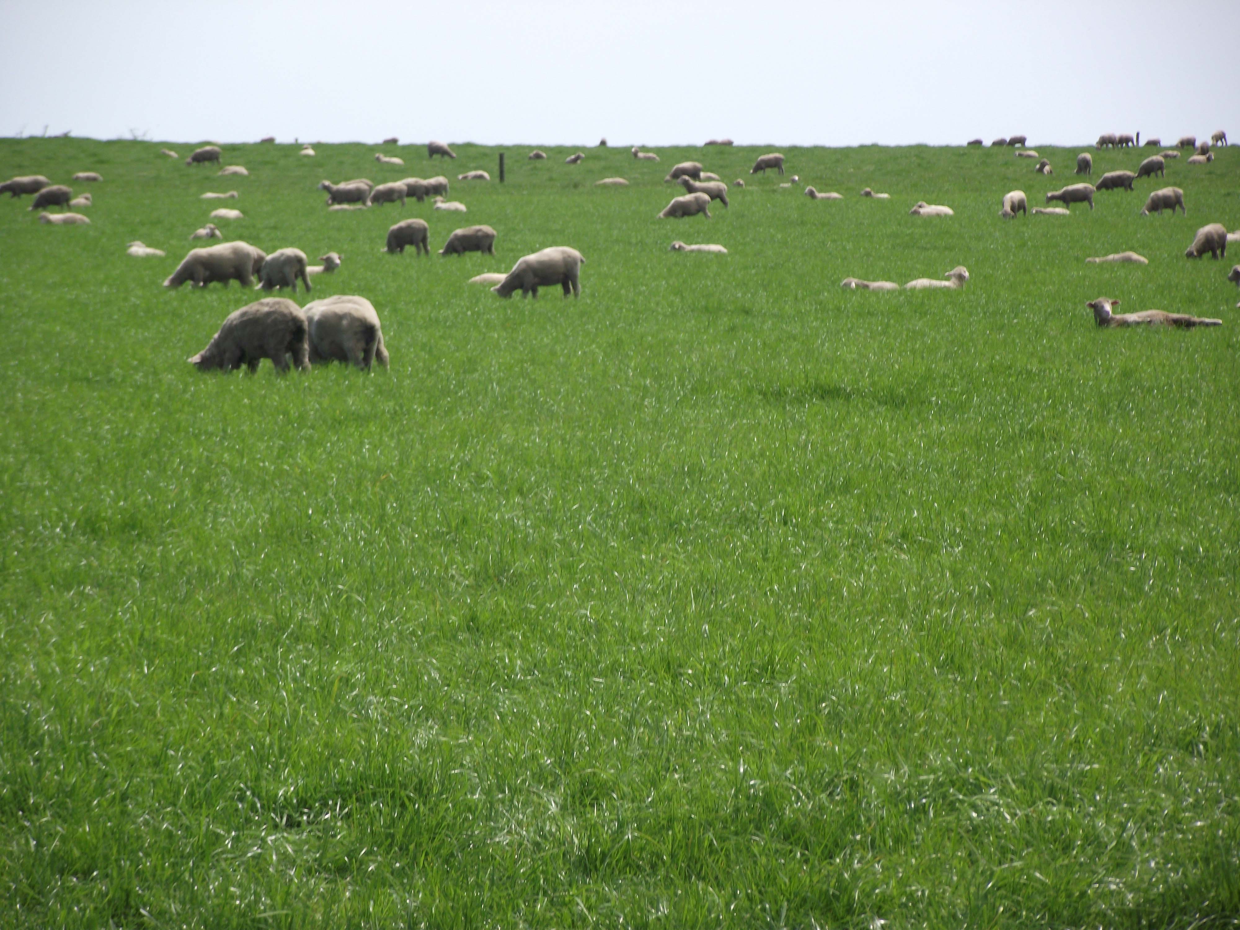A new ryegrass pasture should be ready to graze around six weeks after drilling depending on soil temperatures, seedbed preparation and cultivar. First grazing should occur after carrying out a pluck test using the thumb and first finger to simulate an animal tearing a mouthful of pasture. If the leaves break off and the plants are NOT removed by the roots the pasture is ready for first grazing. New pasture should be grazed to 5-6 cm and care should be taken to ensure that plant pulling is minimal.