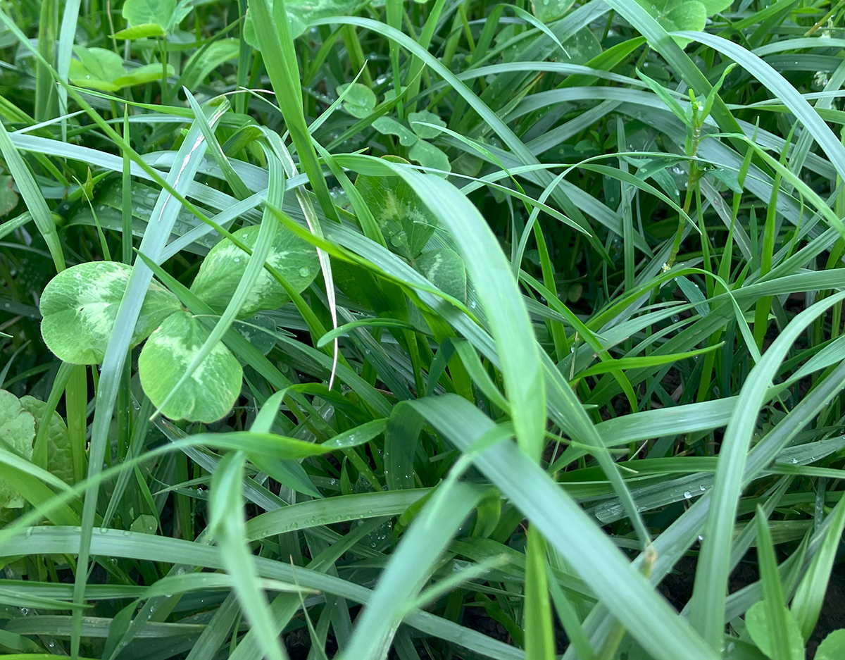 Photo right: Haven tall fescue, Oakdon meadow fescue, Brace white clover & Relish red clover mix